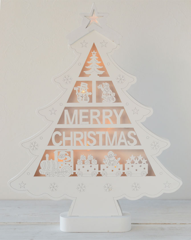 クリスマスツリー 飾り 装飾 ディスプレイ おしゃれ アンティーク 置物 オブジェ LEDライト 電池式 Xmas Christmas クリスマス ホワイト 白 木製 ナチュラル ※こちらの商品は、サイズ・色味・デザイン・質感などに個体差がございます。