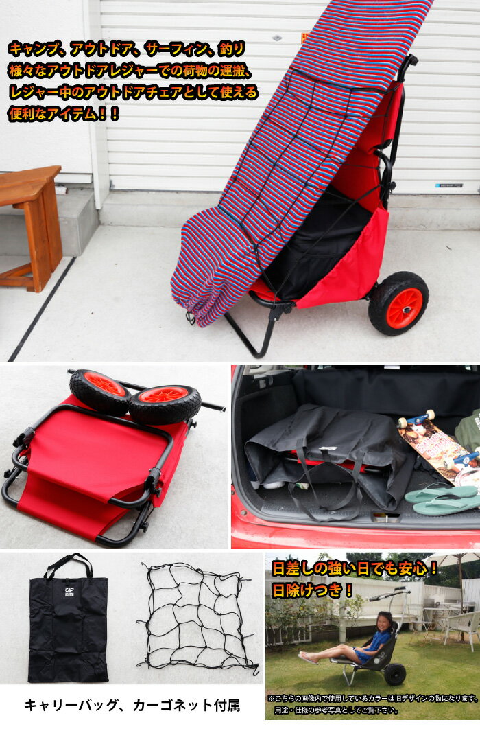 ・駐車場から砂浜まで荷物を載せて楽々移動 ・アルミパイプ使用で軽量・丈夫です。