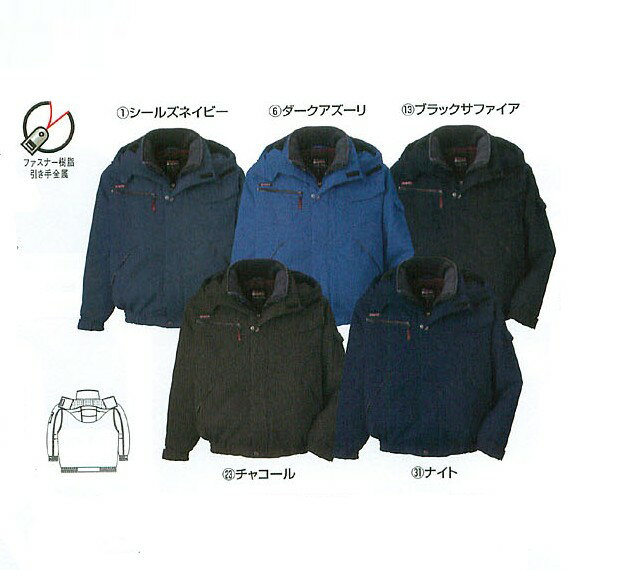 洗練されたデザインが防寒ウェアのイメージを変える!なんと!特別価格でご提供!● カラー(全6色)1)シールズネイビー・3)シルバーグレー・6)ダークアズーリ13)ブラックサファイア・23)チャコール・31)ナイト● 素材表 : 制電ツイル(撥水)裏 : トリコット起毛キルト中綿: トリコット起毛キルト● 混率表 : ポリエステル100%裏 : ポリエステル100%中綿: ポリエステル100%● 撥水● 帯電防止● ファスナー樹脂引き手金属A-2760 S M L LL EL 4L 5L 6L 胸廻 121 125 129 135 141 147 153 159 肩巾 52 54 56 58 60 62 64 66 袖丈 57 58 59 60 62 64 64 65 着丈 64 67 70 73 73 75 75 77 * * * * * * * * * * * * * ※サイズS〜4Lにつきましては、価格が違いますので別ページになります。
